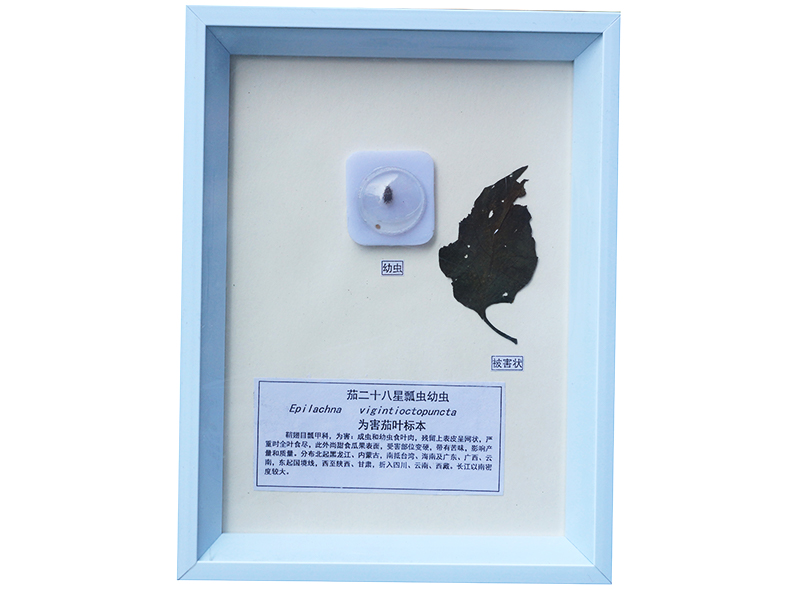 茄二十八星瓢蟲幼蟲危害茄葉標本